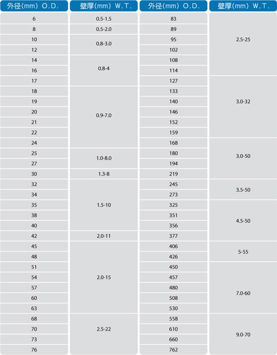 產品尺寸:外徑6mm-762mm